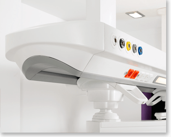 Au cours du développement d’Abitus, les concepteurs ont accordé une attention particulière à la combinaison de formes et de matériaux pour parvenir à une intégration esthétique remarquable des différentes parties qui forment cette unité suspendue au plafond. Dans les tuyaux de suspension, les gaz médicaux et les câbles électriques sont logés dans des compartiments isolés séparés qui sont divisés verticalement par une division interne. L’équipement est réparti entre l’unité horizontale, les chariots et les colonnes. L’unité horizontale et les colonnes conviennent pour abriter les mécanismes électriques et les gaz médicaux tandis que les chariots conventionnels sont équipés d’étagères, de tiroirs, de rails techniques, de supports de perfusion, etc. Il est important de mentionner que les prises de gaz sont fixées en position verticale pour une meilleure compatibilité avec les accessoires . Pour l’éclairage direct, nous proposons un module d’éclairage standard 1x24W T5 avec interrupteur intégré. Il est peint en couleur grise faisant un joli contraste avec la couleur standard blanche de l’unité horizontale. Si vous le souhaitez, un ballast dimmable peut être équipé afin d’ajuster le niveau d’éclairage. La lumière indirecte a été réalisée avec un module d’éclairage TC-L 2x55W assurant une lumière sans éblouissement pour les patients et le personnel hospitalier dans un environnement confortable. Dans le même temps, ce module d’éclairage permet de placer symétriquement les tuyaux de suspension lorsqu’il y a plus d’une unité connectée en ligne droite.