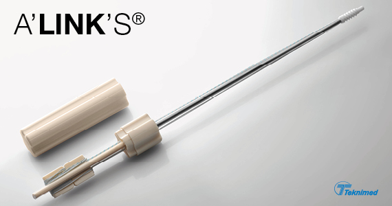 A’LINK’S ® est un ancrage de suture à visser biorésorbable monté dans un tournevis à usage unique avec deux filetages de suture UHMWPE (USP2). L’appareil est stérile et prêt à l’emploi.