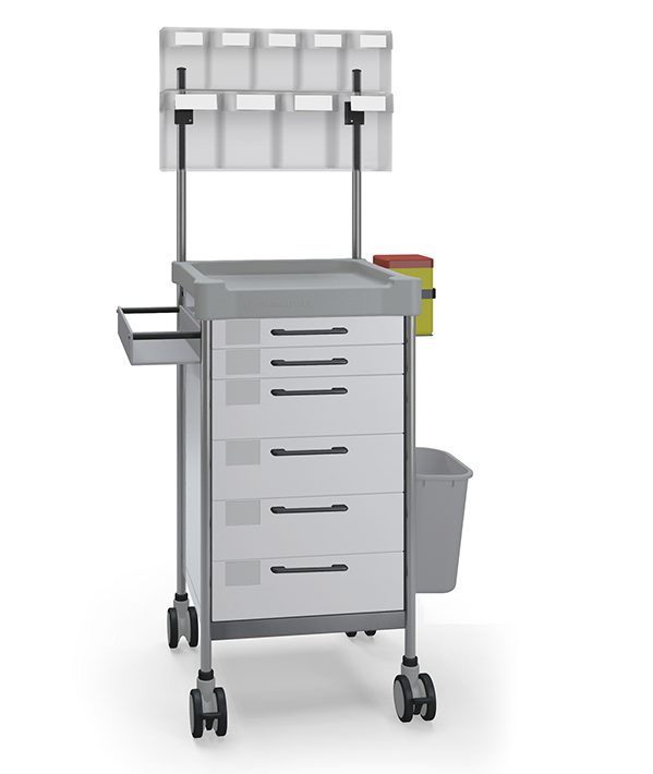 Chariots statiques, utilisés dans les zones d’assistance médicale.