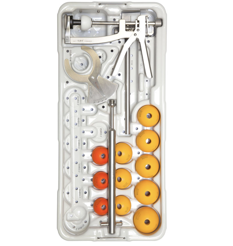 - La cupule CHIBF E est proposée de la taille Ø 43 mm à Ø 45mm pour des têtes fémorales de diamètre 22,2 mm et de la taille Ø 47 mm à Ø 59 mm pour des têtes fémorales de diamètre 28 mm.