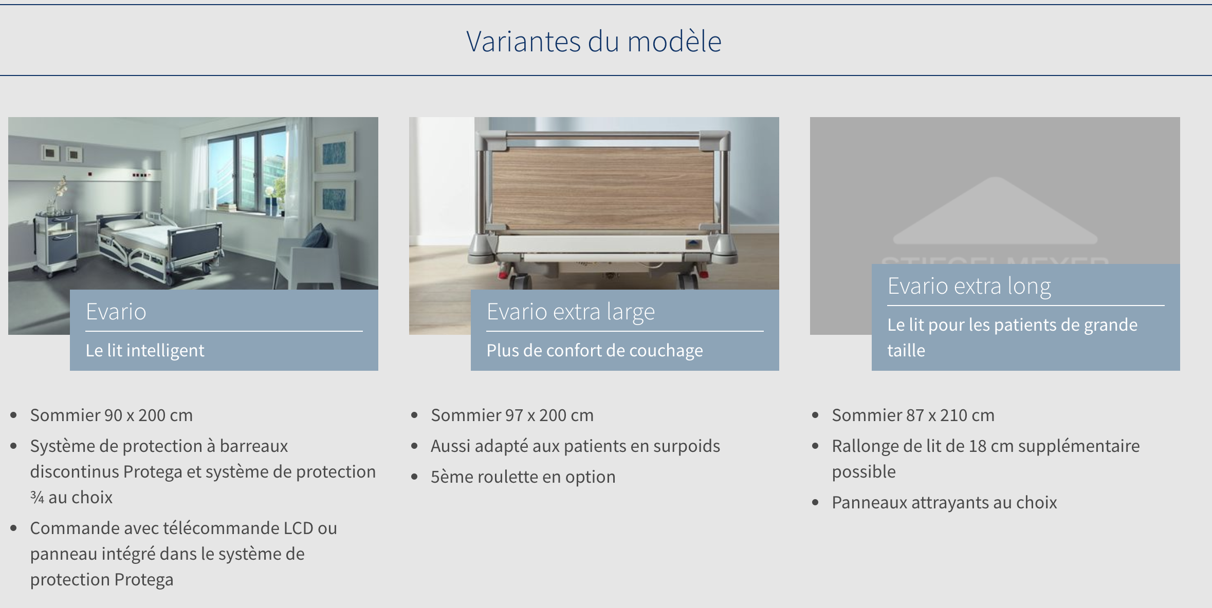 L’Evario, confortable et économique, convient aux soins médicaux quotidiens, aux soins intensifs et soutient un processus de guérison rapide des patients. Ses options de commande modernes sont particulièrement attrayantes. Le système de protection à barreaux discontinus Protega s’utilise facilement et convainc par ses excellentes caractéristiques en termes d’hygiène.