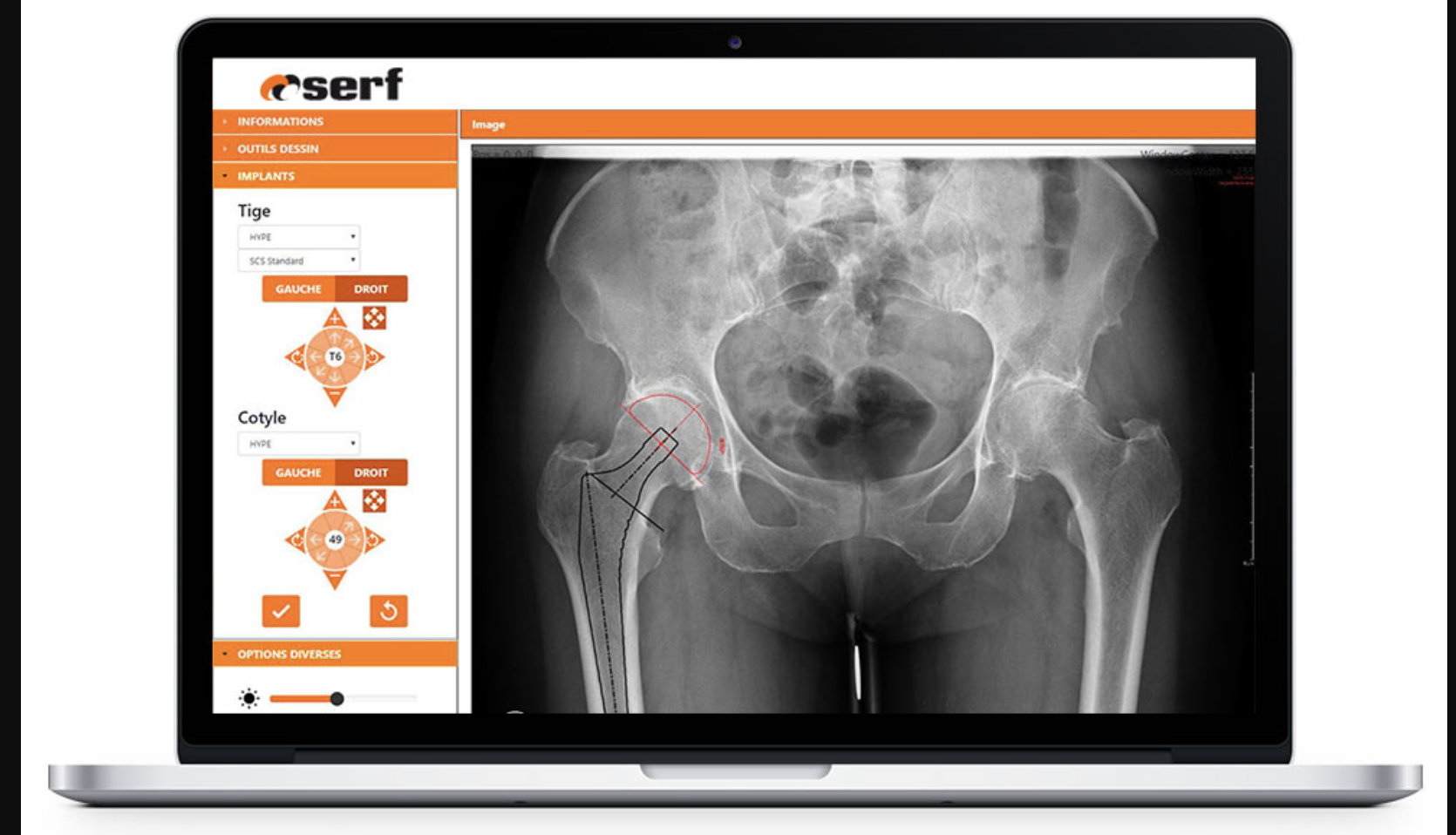 SERF propose un système de planification 2D accessible via une plateforme web. Il n’y a aucun logiciel à télécharger, aucun frais ni d’installation ni de fonctionnement pour vous permettre de planifier vos PTH SERF. Cette solution offre la possibilité de sélectionner et de positionner les implants en s’affranchissant des biais de projection.
