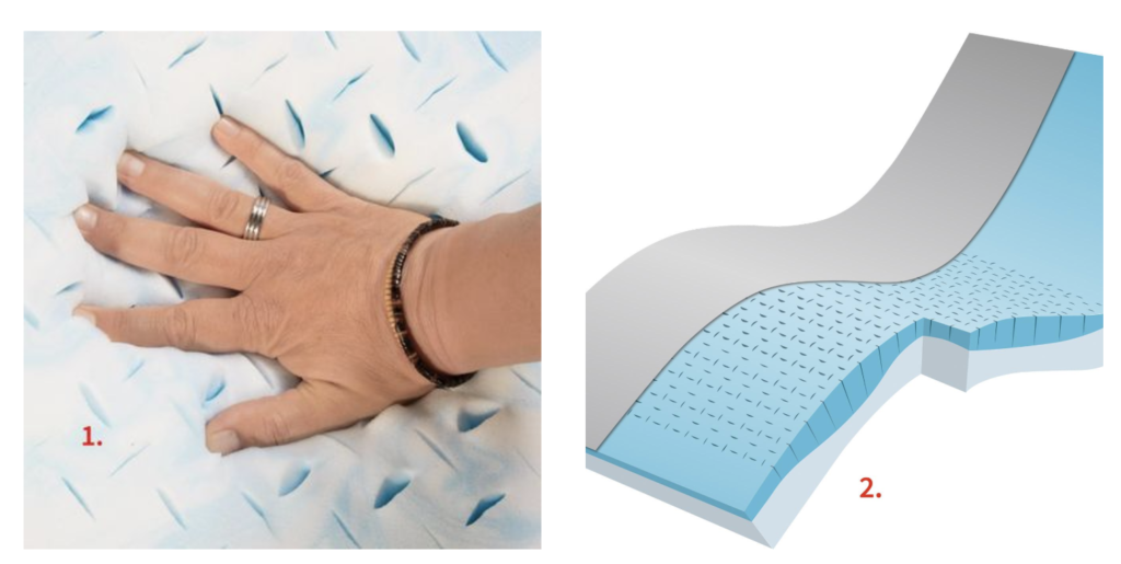 1. Le poinçonnage de la couche Sky-therm® améliore l’élasticité ponctuelle ainsi que la ventilation du matelas.